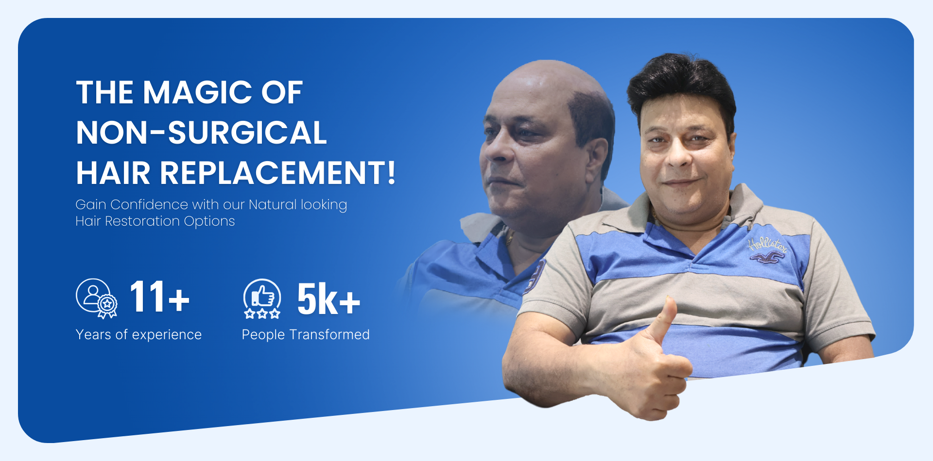 The cost of hair wigs and hair patches varies depending on the quality of the product, size, and type. It is important to discuss your budget and needs with a professional to determine the best option for you. Starting price for the hair wig at La Densitae Hair Wig is ₹ 9,999/-